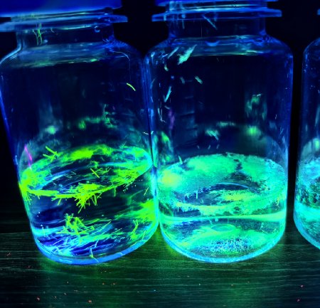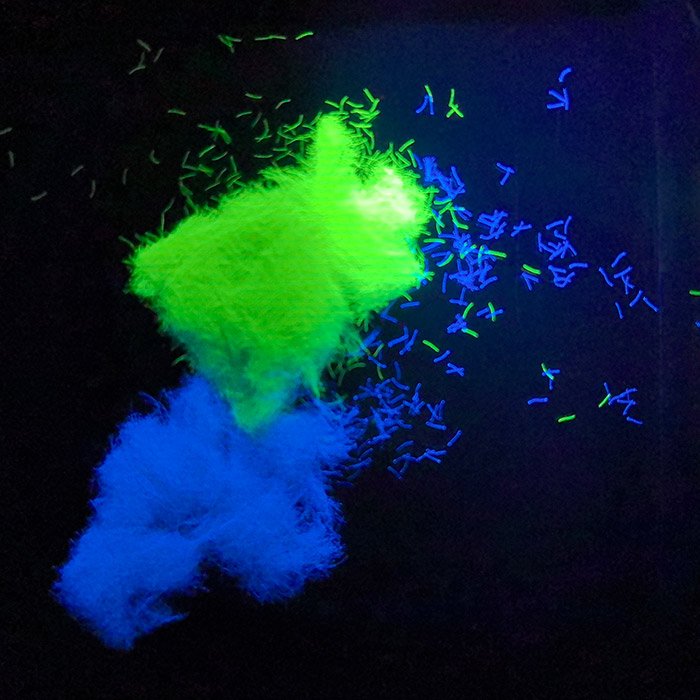 普通纤维直径30-40㎛,此种纤维经过特殊工(gōng)艺直径可(kě)以做到8-12㎛。表面无色或者乳白色,紫外灯下发红、黄、蓝、绿、等颜色。