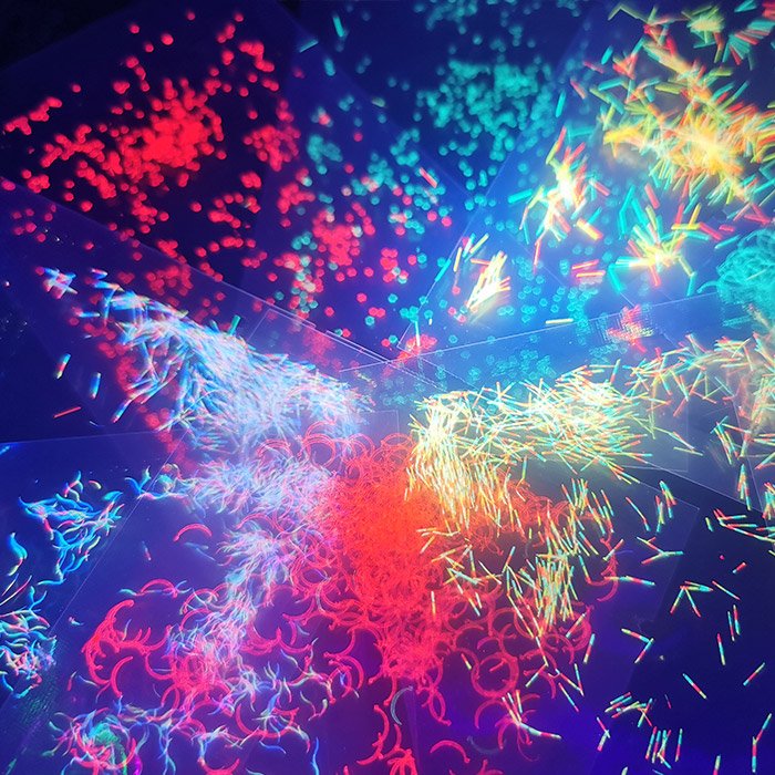 印刷纤维丝片 | 红、黄、蓝、绿、橙、品等 | 30-50微米 | 按需 | PET |