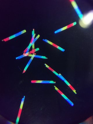 •该纤维可(kě)用(yòng)来制作(zuò)防伪纸张。该纤维是有(yǒu)颜色的(红、蓝、绿等)或者无色,混入纸浆抄纸后,自然光下或者紫外灯等工(gōng)具(jù)下观察,彩色纤维随机分(fēn)布在纸张中(zhōng),用(yòng)针可(kě)将纤维挑出。