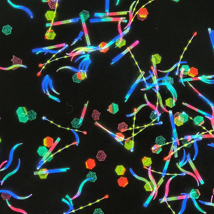 表面无色,一色或者多(duō)色。也可(kě)做成微缩文(wén)字。模切随机。形状可(kě)六边形、長(cháng)条、其他(tā)异形等。